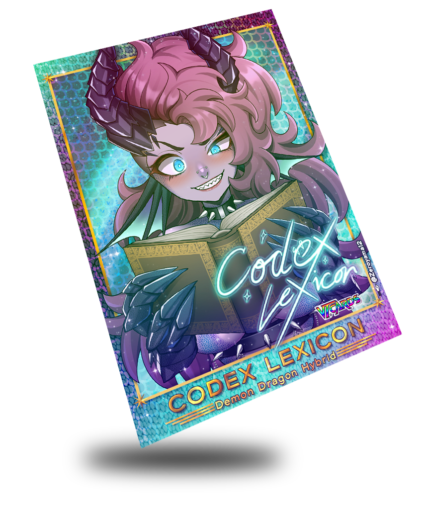 Step into a world of intellect and intrigue with this custom VTuber trading card featuring the enigmatic Codex_Lexicon. Brought to life with stunning artwork by zeroyama12, this collectible captures Codex’s refined presence and thought-provoking charm.