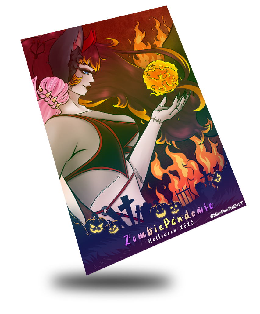 1 of 8 Cards that combines to create a full illustration celebrating Halloween 2025 with the VT-Cards Crew! This Holographic Trading card features @ZombiePandemic in her Devil Halloween costume. Featuring artwork by @MiraPawlita. Collect all 8 cards to create the full image and celebrate Halloween right this year by adding all these costumes to your collection!