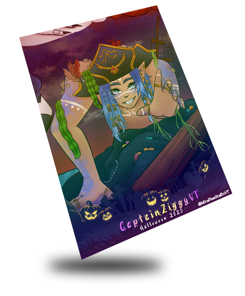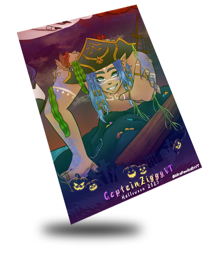 1 of 8 Cards that combines to create a full illustration celebrating Halloween 2025 with the VT-Cards Crew! This Holographic Trading card features @CaptainZiggyVT in His Swamp Monster Halloween costume. Featuring artwork by @MiraPawlita. Collect all 8 cards to create the full image and celebrate Halloween right this year by adding all these costumes to your collection!